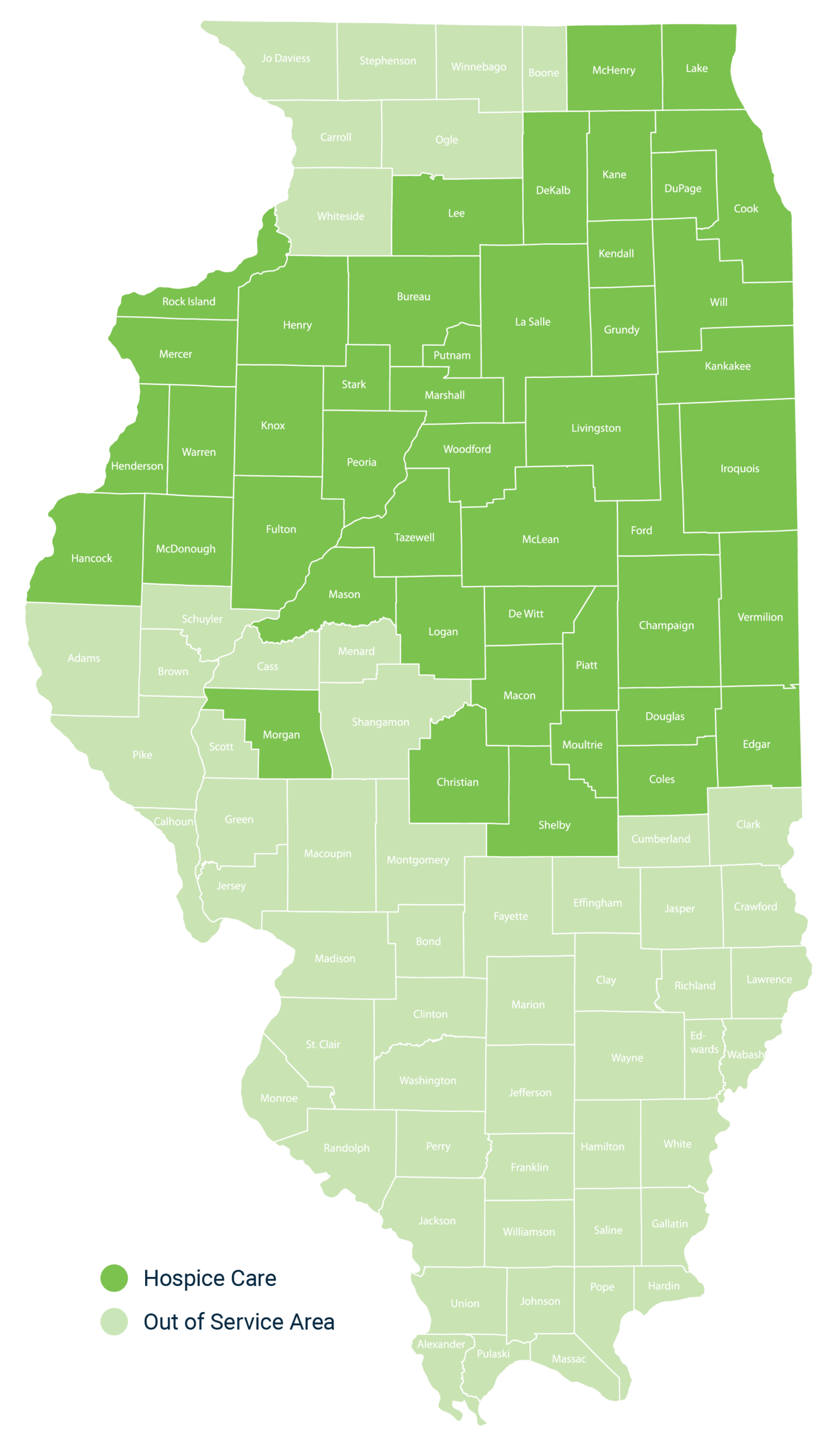 We are honored to support our patients and families in communities throughout Illinois. We may be able to coordinate your care even if you are outside of these existing service areas. Just ask.
