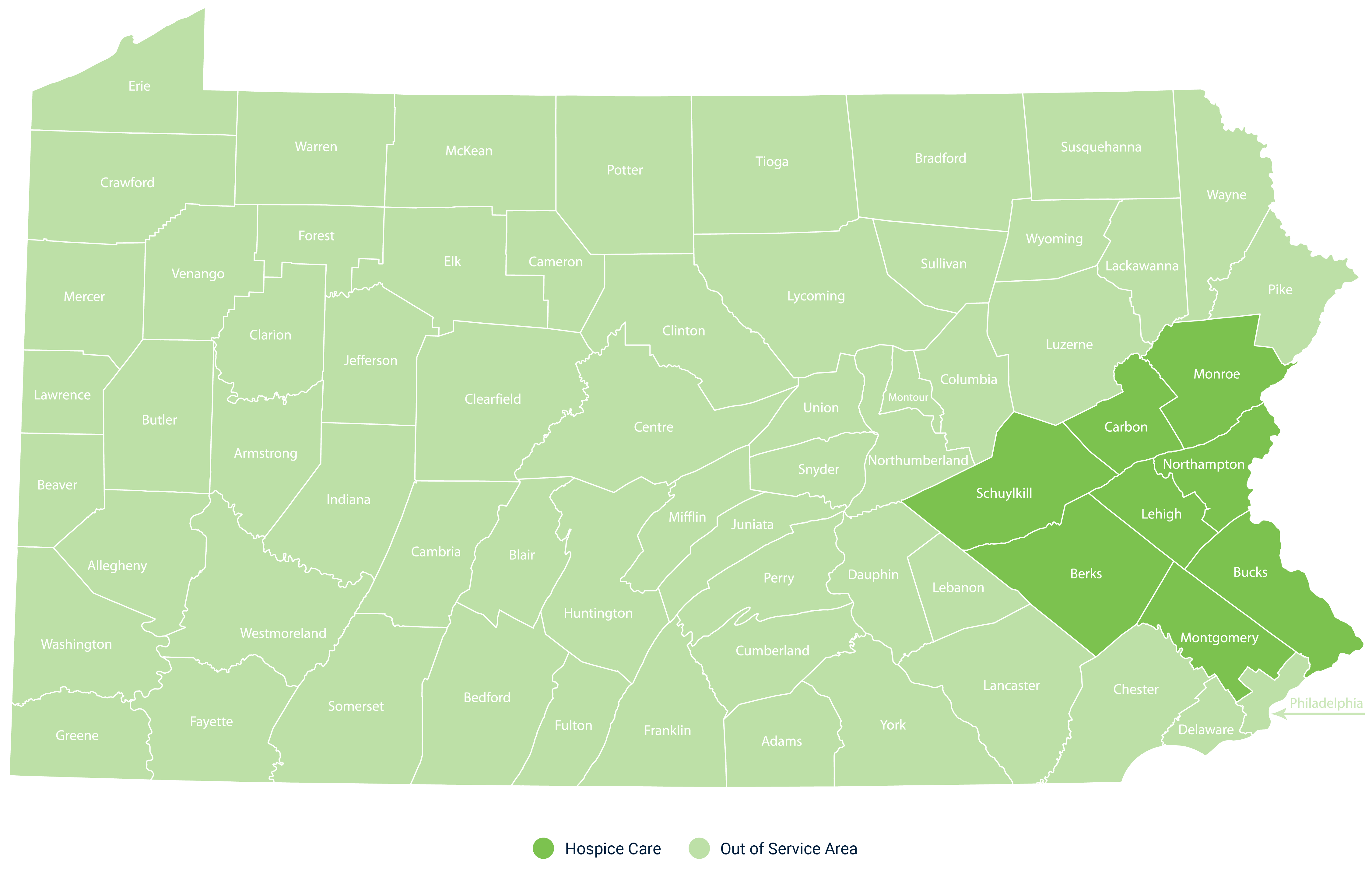 We are honored to support our patients and families in communities throughout Pennsylvania. We may be able to coordinate your care even if you are outside of these existing service areas. Just ask.